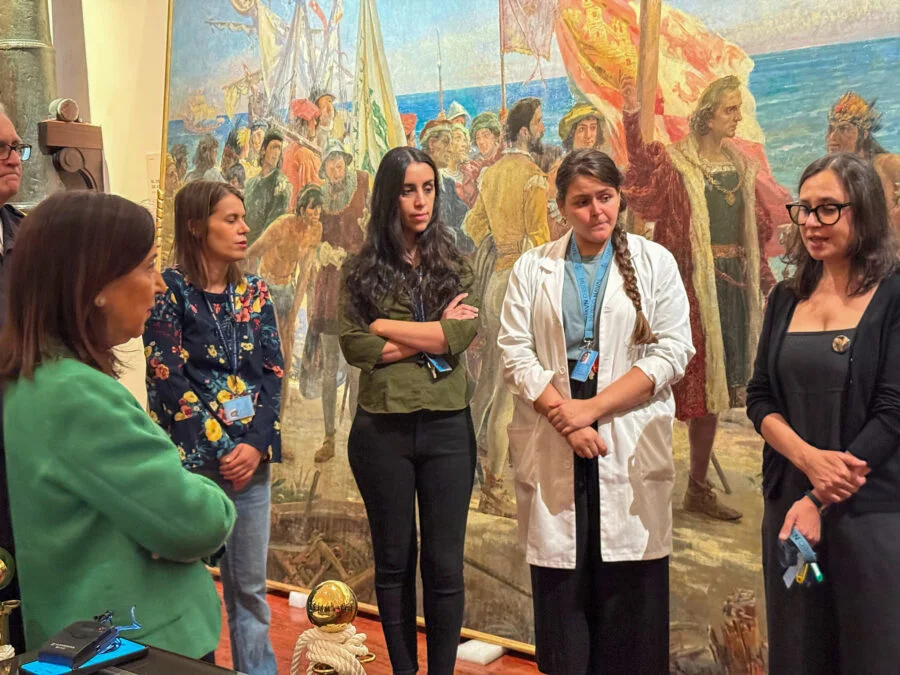 El domingo 12 de octubre, Día de la Hispanidad, transcurría con tranquilidad para Regina Zurdo, conservadora-restauradora del Museo Naval de Madrid. Sin embargo, alrededor de las 14:15, la calma se interrumpió cuando recibió un mensaje alarmante en el grupo de WhatsApp del Área de Conservación. La directora técnica del museo, Berta Gasca, compartió un comunicado breve pero inquietante: «Ha sucedido esto», junto a una imagen del impresionante cuadro Primer homenaje a Cristóbal Colón de José Garnelo, de seis metros de largo y tres de alto, que ahora manchaba de pintura roja. Las responsables del ataque, Victoria Domingo y Luna Lagos, integrantes del movimiento Futuro Vegetal, habían arrojado la pintura sobre la obra antes de ser detenidas por un vigilante y la Policía Nacional.